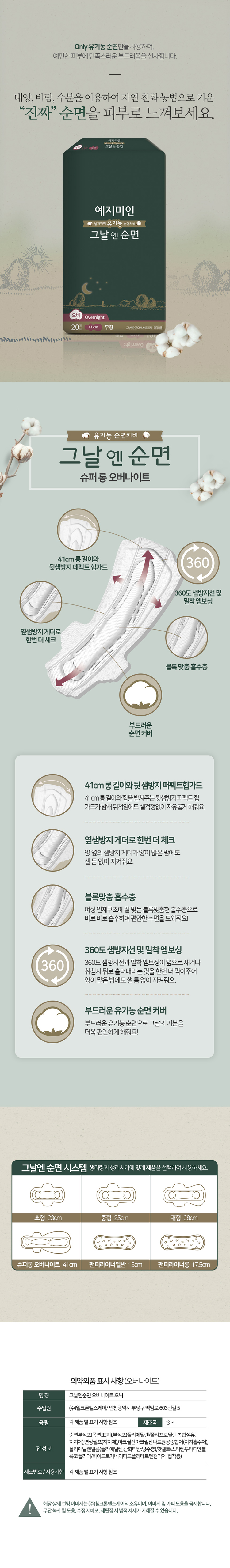 예지미인 >제품 > 생리대 > 오버나이트