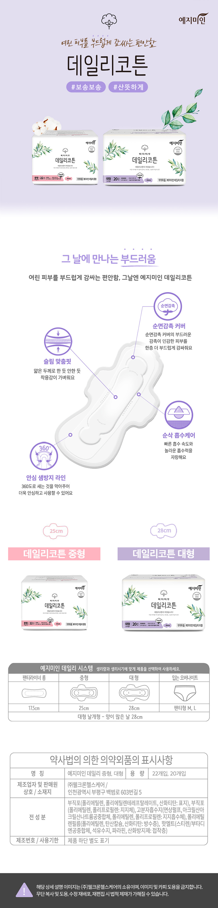 취향과 생리량에 따라 선택하는 예지미인 시스템