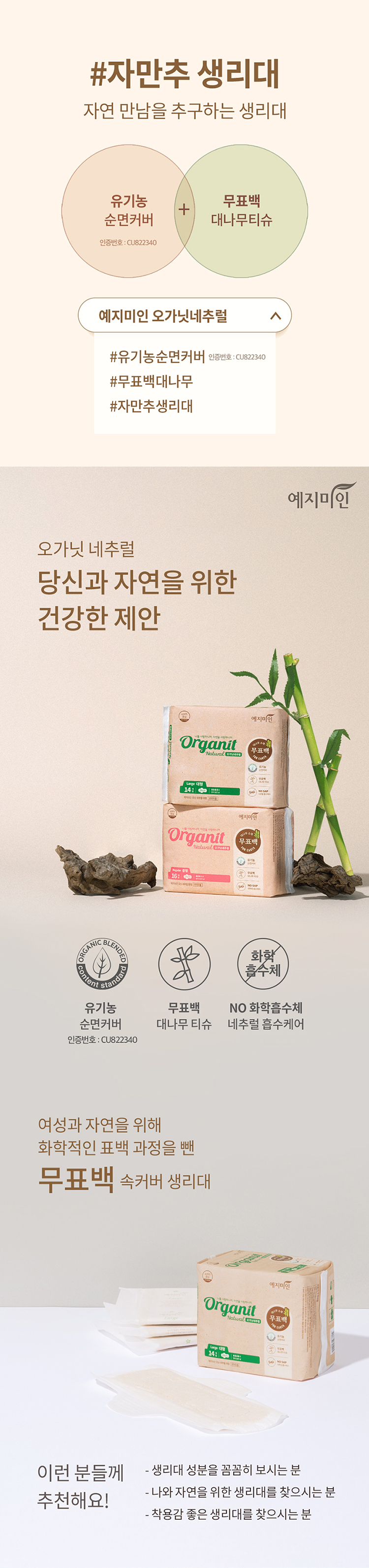 취향과 생리량에 따라 선택하는 예지미인 시스템